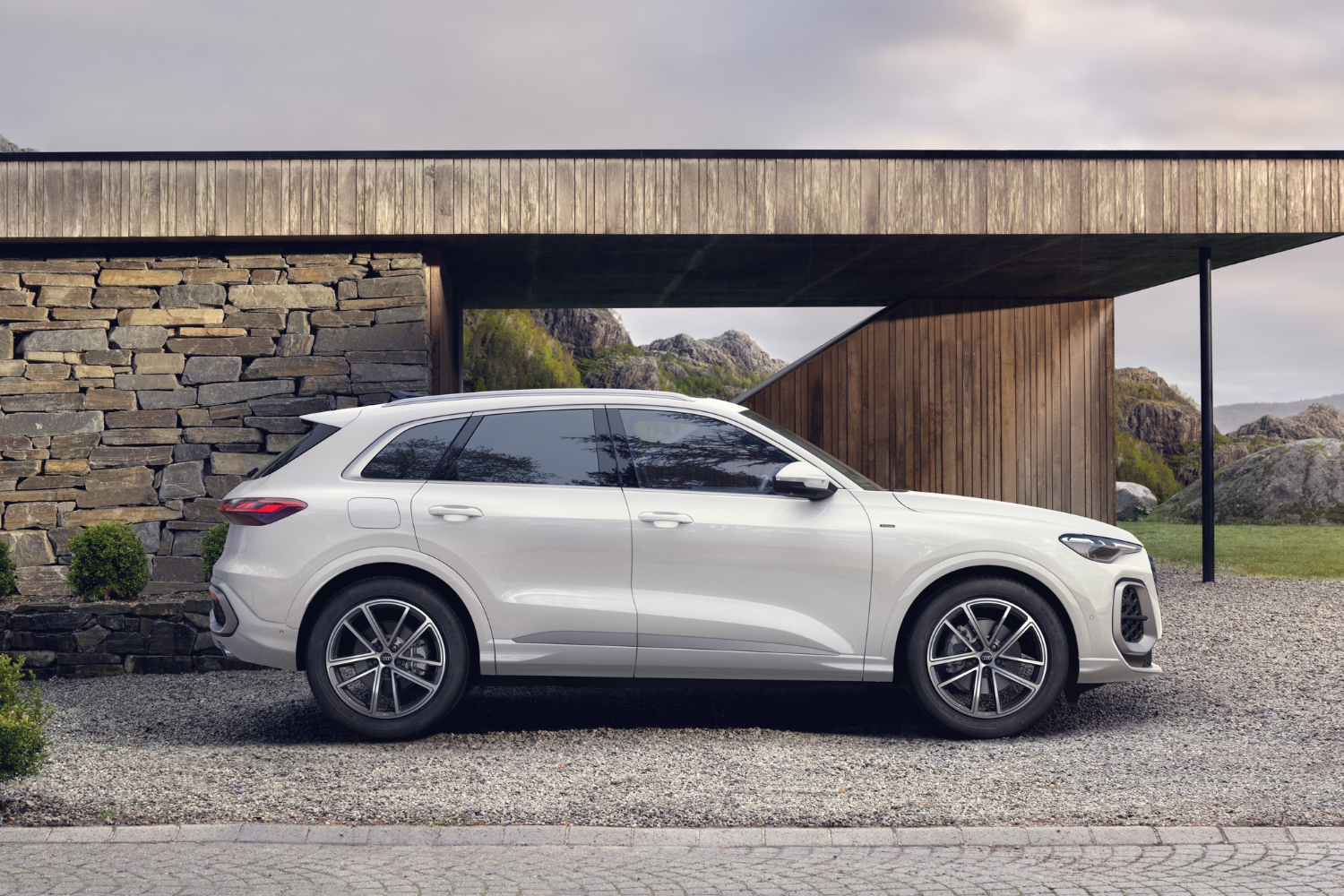 The Audi Q5 e-hybrid SUV showcases modern Audi design with strong proportions and sleek details.