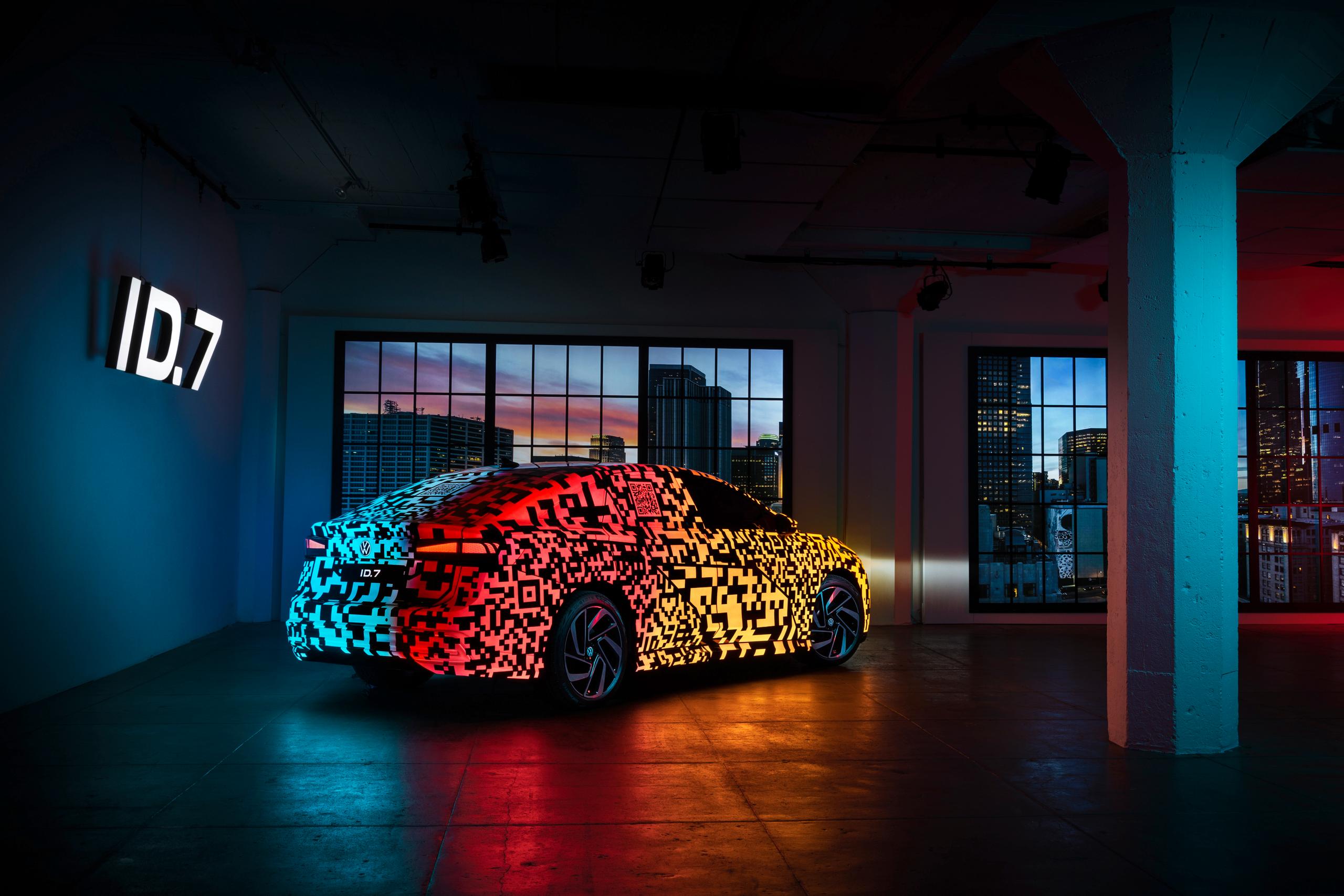 Volkswagen Group is returning to the CES – the world’s largest trade show for electronics – with a very special product. This is the new ID.7. Volkswagen's next global electric vehicle with a digital camouflage look.