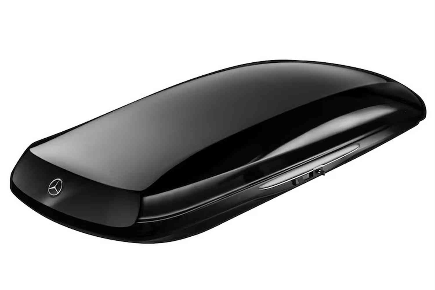 The Mercedes-Benz roof box impresses with its organic, aerodynamic shape, elegantly sporty proportions and clear lines. Thanks to the integrated fastening system, the roof box can be easily and directly mounted and fixed to the roof rails without using adapters.